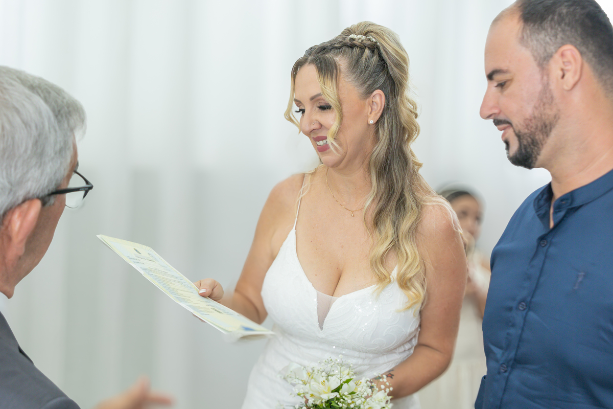 O dia começou com os preparativos cheios de expectativa, onde capturamos a essência do dia do noivo e da noiva em meio a risadas e abraços calorosos. A cerimônia foi um espetáculo de sentimentos genuínos, com votos que arrancaram lágrimas e olhares apaixonados que dispensavam palavras.